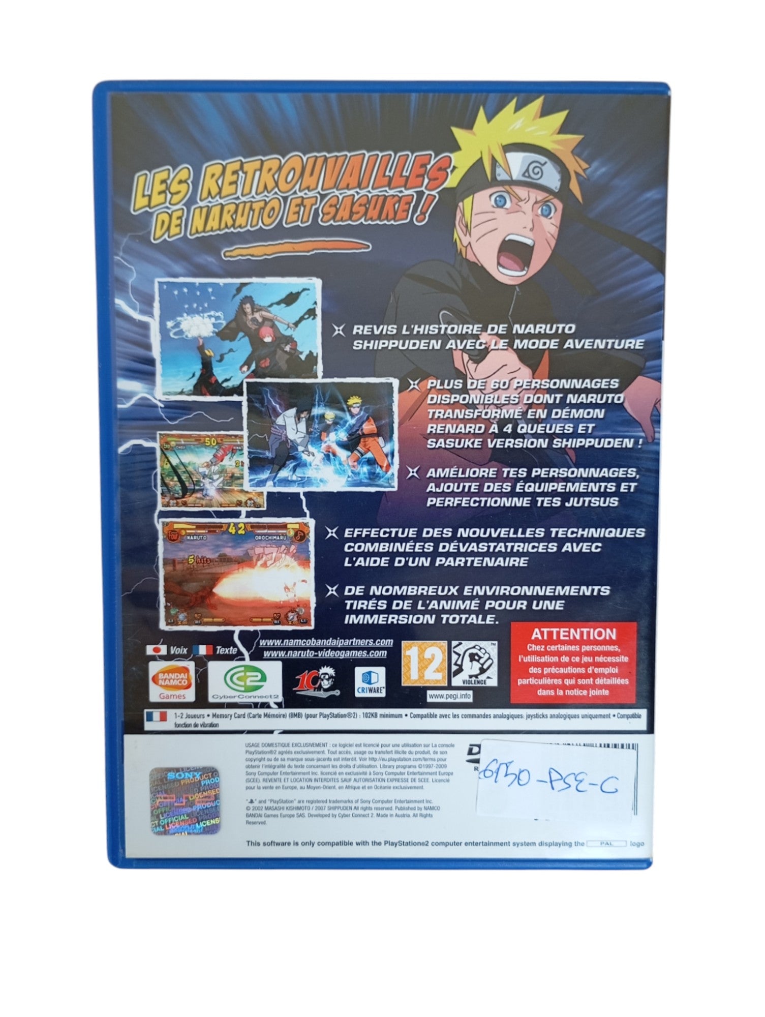 Naruto Shippuden : Ultimate Ninja 5 est un jeu de combat/aventure sur Playstation 2. Incarnez le célèbre ninja de Konoha dans ses nouvelles aventures baptisées Shippuden. Outre le mode Versus, un mode Histoire vous permet de vous battre aux côtés de deux partenaires contre plusieurs adversaires, d'améliorer vos jutsus, et d'effectuer des techniques combinées avec un équipier. De plus, vous avez le choix entre soixante personnages pour jouer contre un ami.