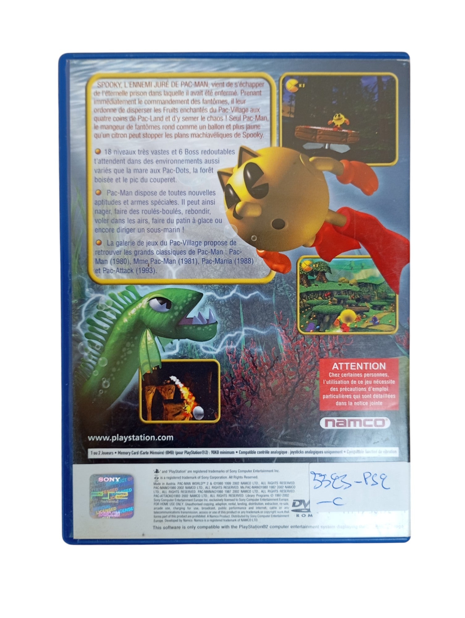Spooky, le meilleur ennemi du célèbre Pac-Man, s'est échappé de la prison dans laquelle il avait été enfermé. Aidez le célèbre mangeur de fantômes dans Pac-Man World 2, un jeu de plates-formes sur PS2, à venir à bout des plans machiavéliques du vil Spooky, et à ramener sérénité et calme au Pac-Village et à Pac-Land.