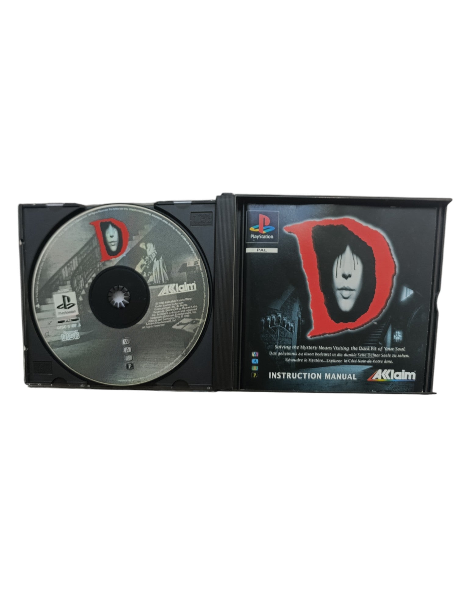 D – PlayStation 1, un jeu culte et mystérieux, parfait pour les collectionneurs de titres originaux et marquants.