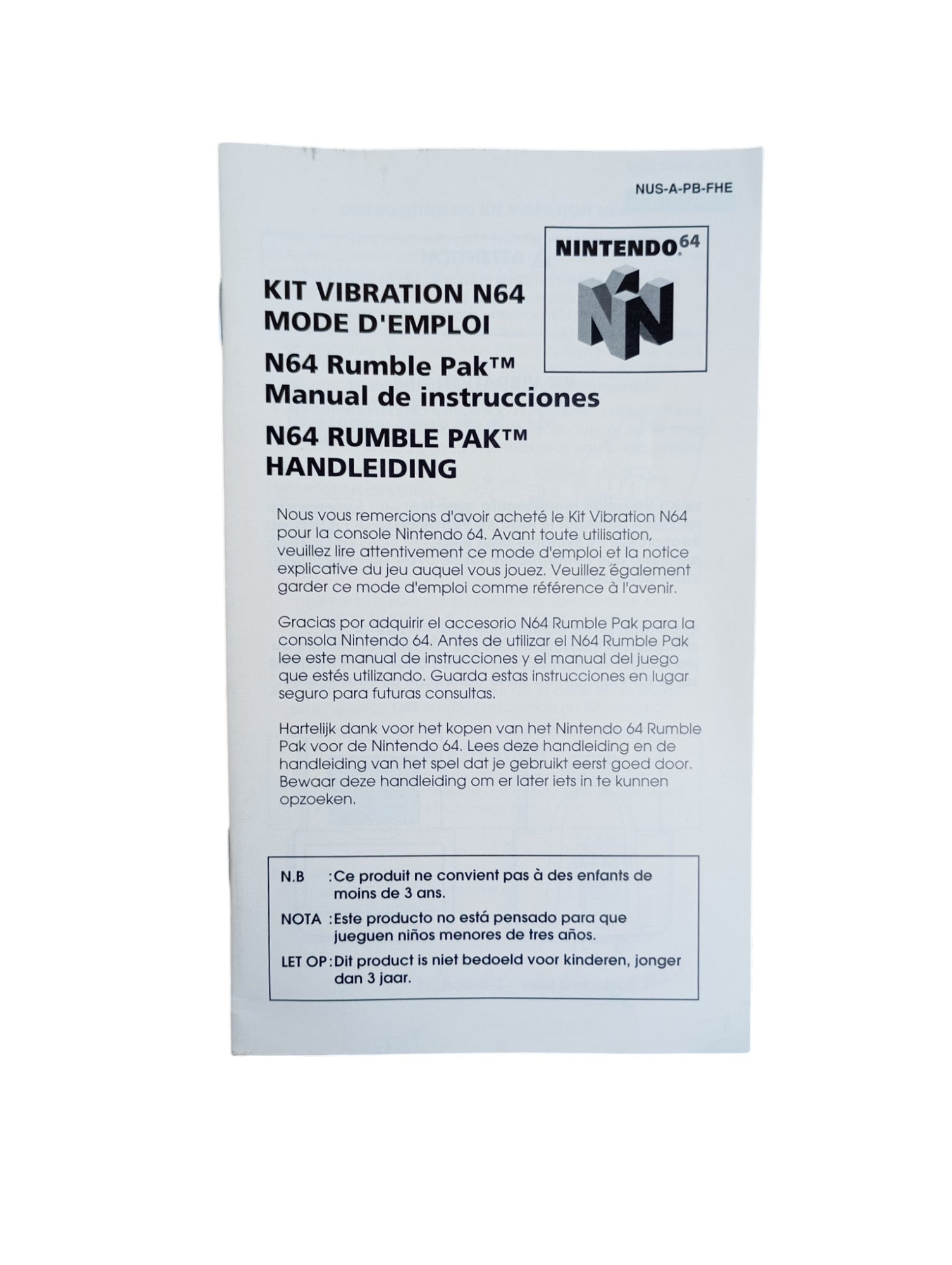 Notice Rumble pack Nintendo 64